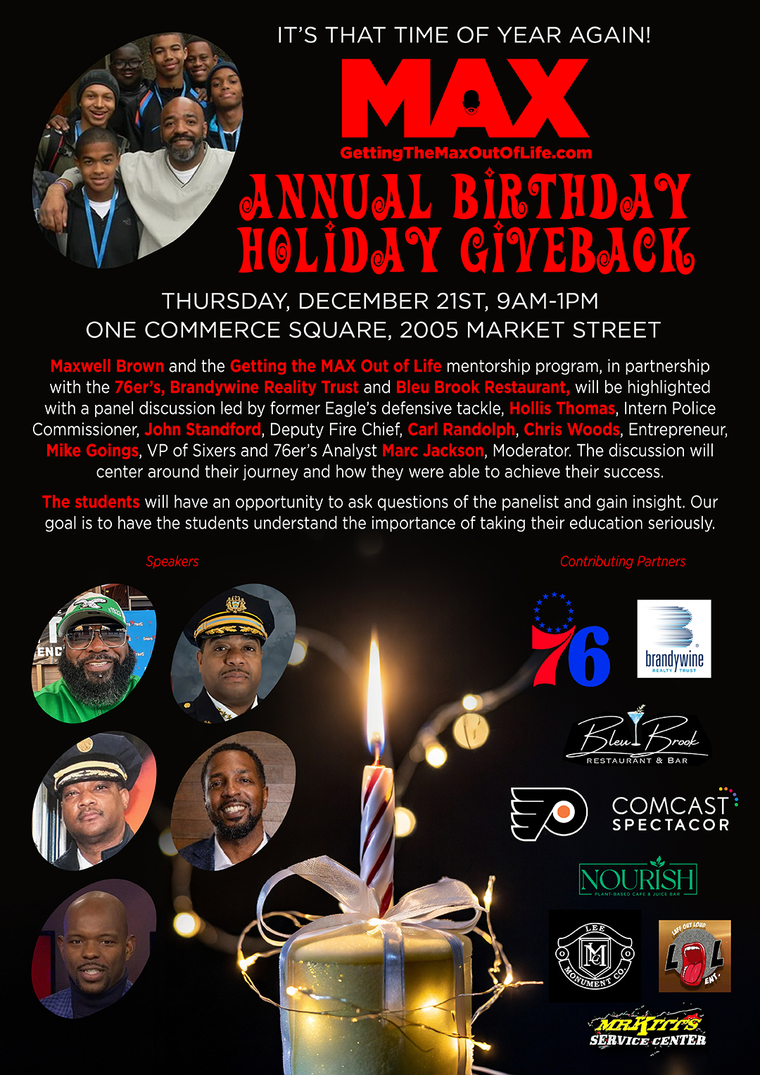 GETTING THE MAX OUT OF LIFE is partnering with Eagles receiver, Alshon Jeffery, DTLR/VILLA, Chris "E" and 6abc News Anchor Sharrie Williams as we surprise 25 deserving youth with a special day!!! The kids will be given a shopping spree and plenty of Holiday cheer.